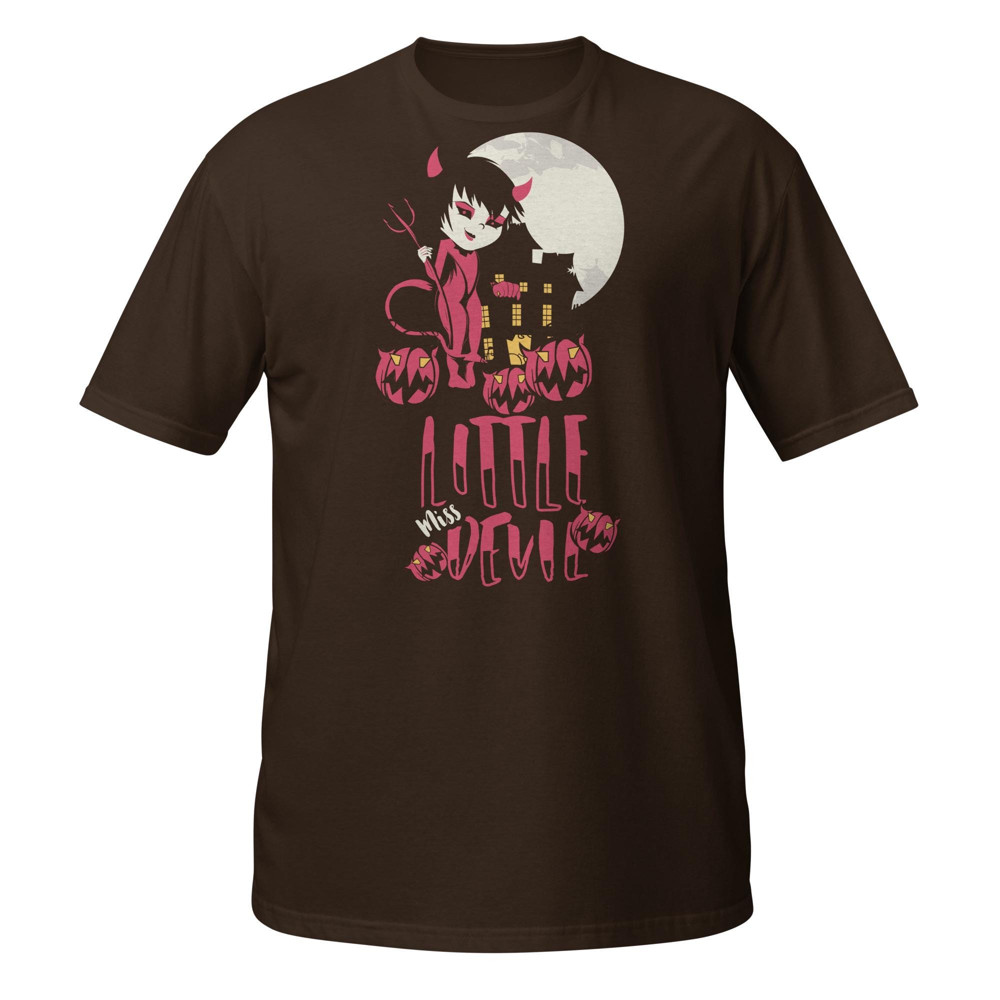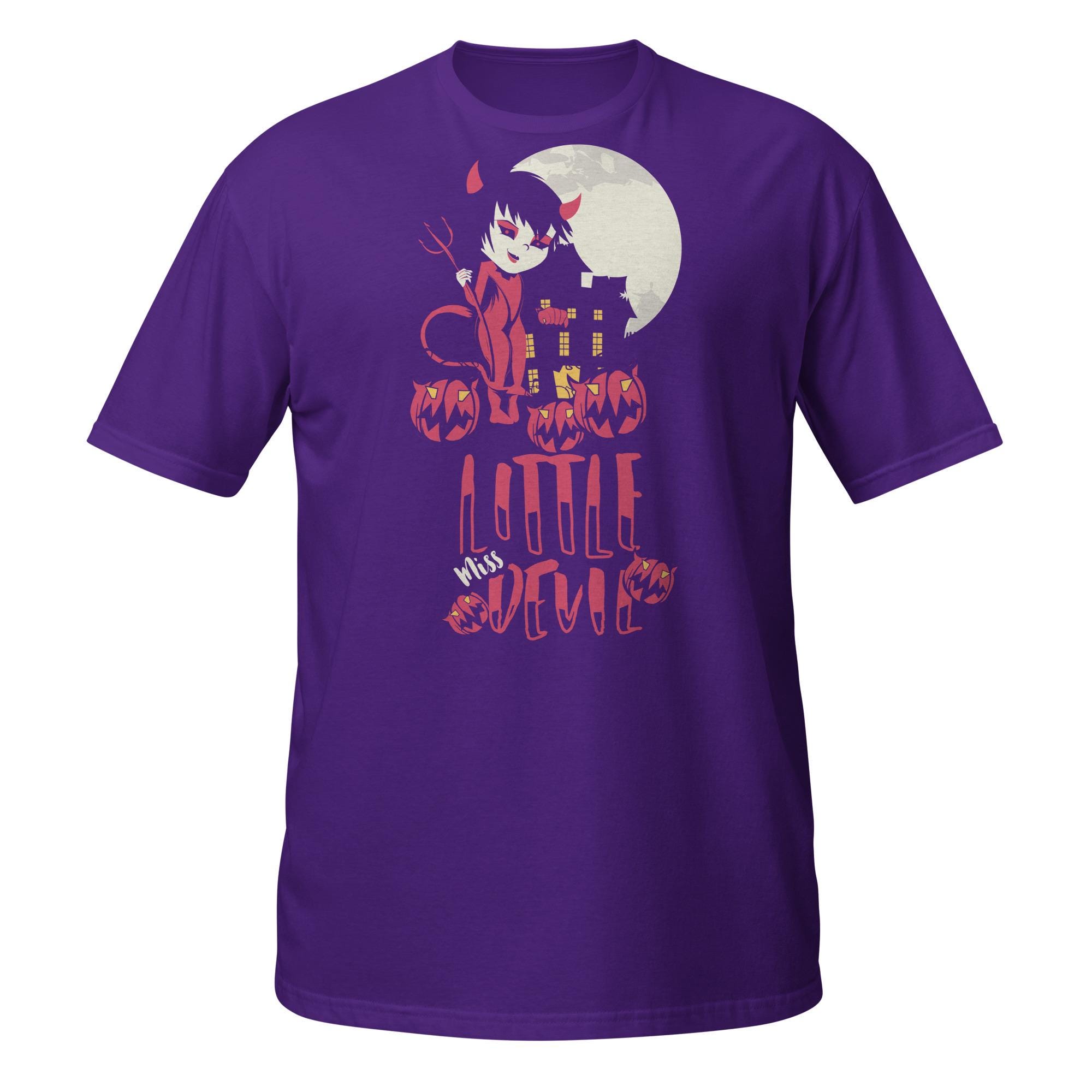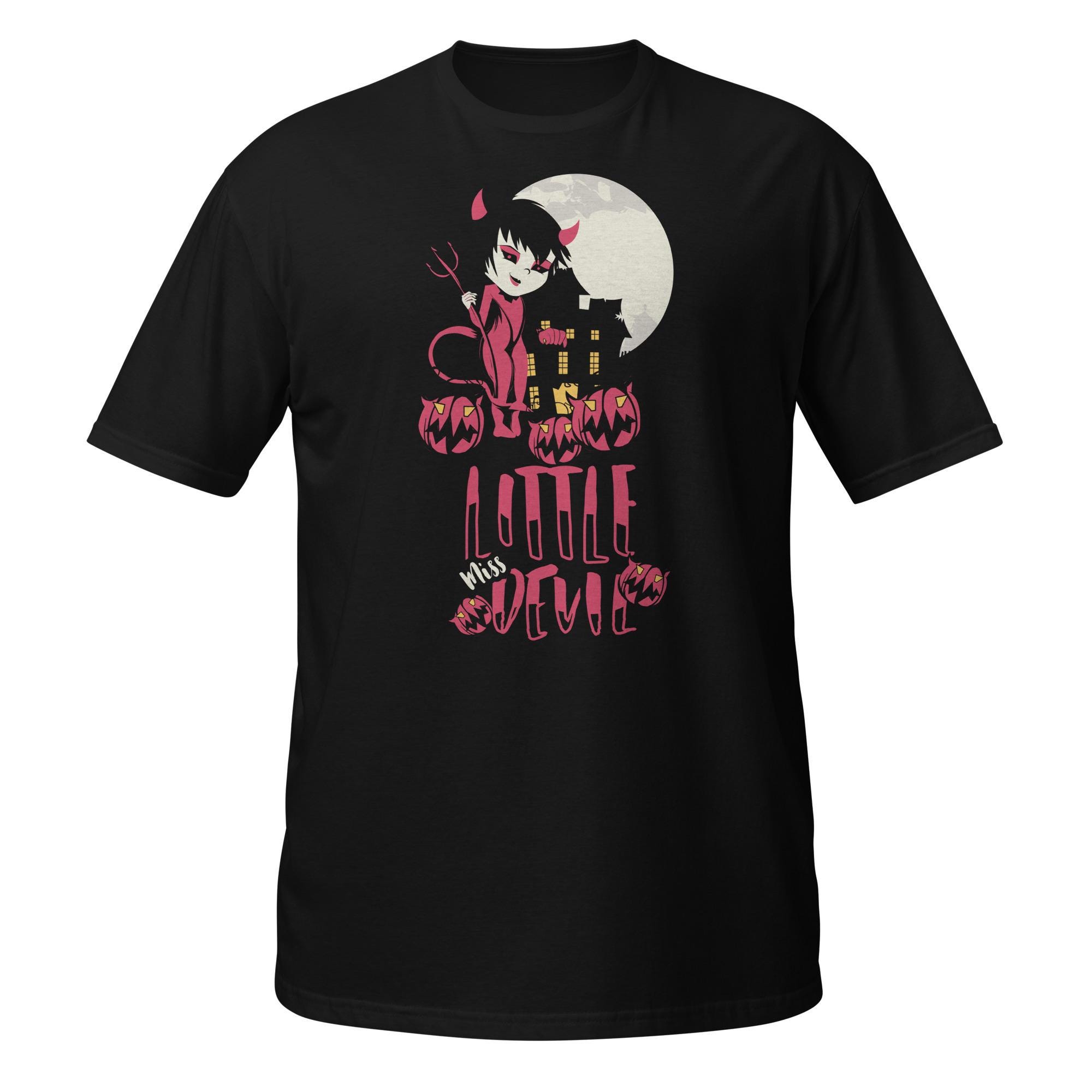 Add a little devilish fun to your Halloween look. Grab the “Little Miss Devil” t-shirt today and show off your spooky-cute style!