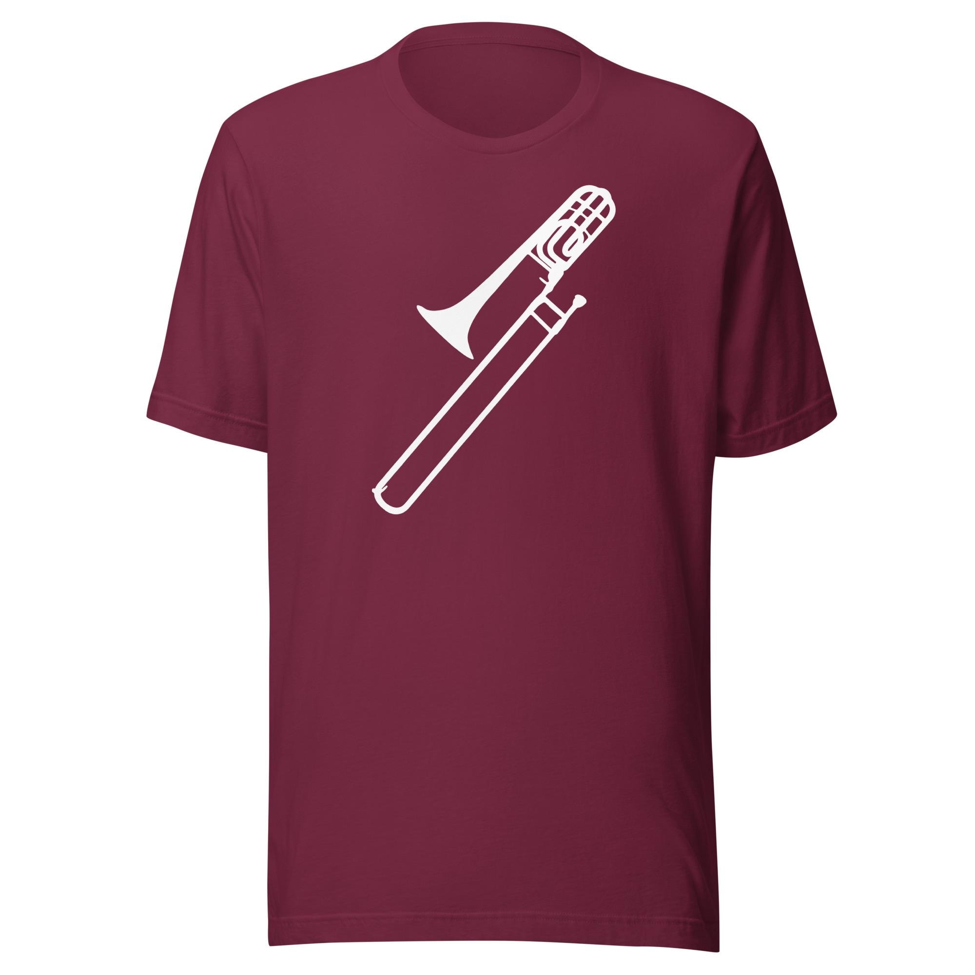 Celebrate your passion for brass with this clean and simple trombone t-shirt! Featuring a bold white trombone line graphic, this tee is perfect for band geeks, trombonists, and anyone who knows the magic of slide technique. Printed on the high-quality Bella + Canvas 3001, this shirt is incredibly soft with a retail fit, perfect for rehearsals, gigs, or just showing off your musical pride.